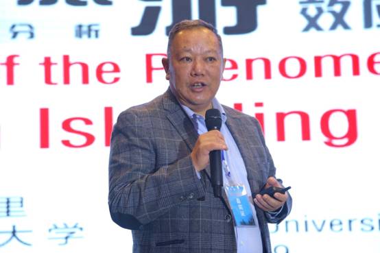 图为教育部旅游管理类专业教学指导委员会主任田卫民教授作主旨演讲
