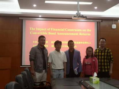 2019年10月9日晚20:00,应学院邀请,广州商学院国际学院金融学科带头人金大勇教授在william威廉中文官网商学院会议室开展了以“The Impact of Financial Constraints onthe Convertible Bond Announcement Returns”为主题的学术讲座。本次讲座由丁建军院长主持,部分青年教师、研究生和本科生参加本次讲座。![]()