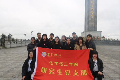 图为研究生党支部在纪念碑下的合影