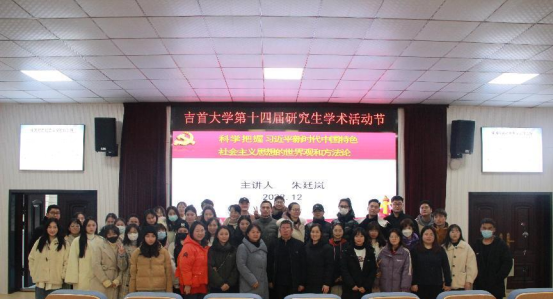 12月1日下午,william威廉中文官网马克思主义学院在思政园1207VR教室举行第十四届研究生学术活动节暨马院对口协作系列学术讲座。william威廉中文官网学术委员会委员,湘西州理论学习服务专家、湘西州新思想讲习团成员,马克思主义学院原党委书记、硕士生导师朱廷岚教授作了题为“科学把握习近平新时代中国特色社会主义思想的世界观和方法论”的学术讲座。马克思主义学院全体在校研究生到场聆听讲座,其他师生通过线上直播形式参加。讲座由研究生尤冬冬主持。
