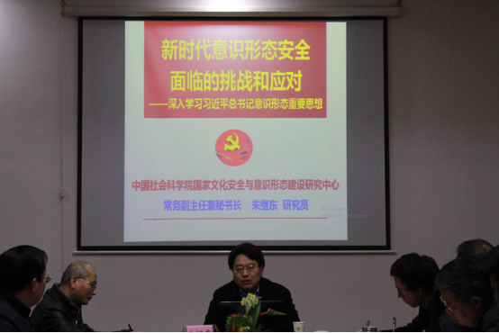 朱继东研究员围绕当前意识形态安全所面临的挑战和如何应对展开了论述,通过对习近平总书记系列重要讲话精神中关于意识形态问题论述的梳理,着重阐述了党的十八大以来意识形态领域建设的重要性,分析了当前意识形态领域面临的境内外敌对势力插手、不少党员干部意识形态能力薄弱、一些官微风波不断暴露不少问题、意识形态斗争频发、敌对势力对敢于亮剑者的围攻呈现出有组织化、集团化、暴力化、政治化趋势等多种挑战,剖析了当前意识形态领域斗争的隐蔽性、复杂性和尖锐性,提出了以认清形势、加强制度建设、能力建设、队伍建设、平台建设及话语权建设等多种应对之策。