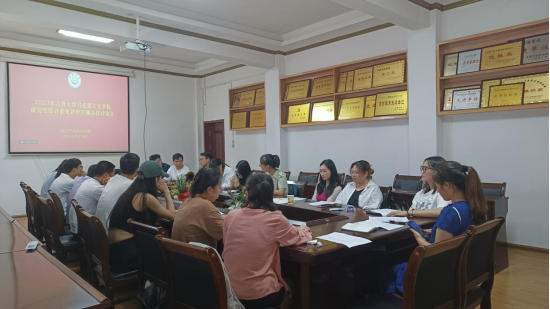 9月18日下午,马克思主义学院在第一教学楼六楼院会议室召开研究生干部新学期工作大会,研究讨论研究生综合素质评价实施方案与秋季学期迎新工作。学院党委书记柴绪亮、副院长刘因灿、研究生秘书欧阳静出席会议,各班班委、研究生会干部等20余位研究生代表参加。会议由学院研究生会主席田野主持。