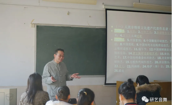 陈教授在课上介绍了包括湘西少数民族口头文学遗产、表演艺术文化遗产、传统技艺文化遗产、民俗文化遗产、饮食文化遗产、医药文化遗产等五大板块内容以及湘西地区各级非遗传承人基本情况。