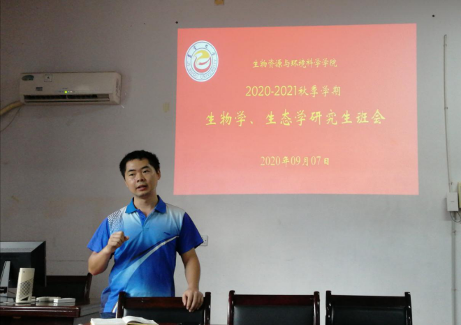 2020年9月7日下午,生物资源与环境科学学院2018/2019级生物学专业和生态学专业研究生在8305会议室召开新学期返校班会,会议由生物资源与环境科学学院研究生秘书黄兴龙主持。