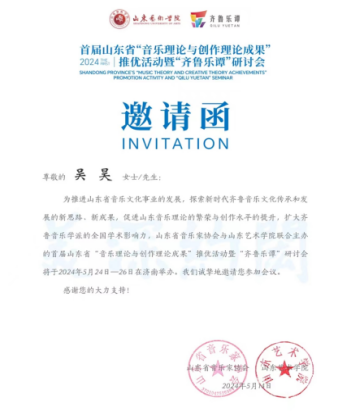 5月25日,由山东省音乐家协会、山东艺术学院主办的山东省“音乐理论与创作理论成果”推优活动暨“齐鲁乐谭”研讨会在济南山东艺术学院文东校区正式开幕。我院音乐创作专业研究生吴昊的论文《三种基础曲式结构单位的创作实践——以艺术歌曲<媚金·豹子>》成功入选此次活动,并于5月26日受邀参加研讨会进行现场宣讲。