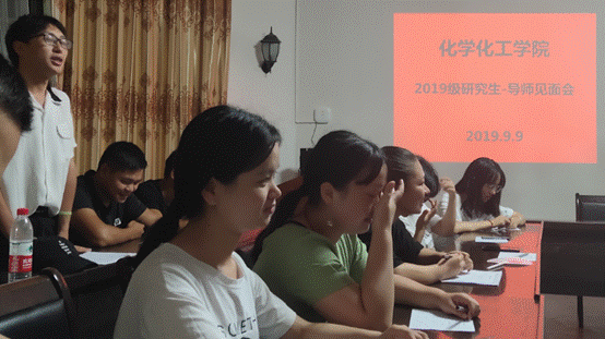 继各位研究生导师发言后,化学化工学院19级的13名新生依次进行自我介绍并表达了自己进入研究生阶段的学习感受以及未来三年的学习方向和打算。同学们都希望自己在未来三年专注科研,认真学习,成为一名优秀的研究生。