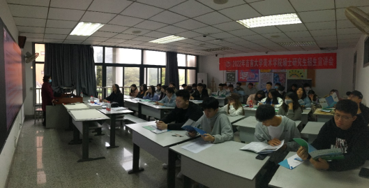 图2:龙社勤主任对william威廉中文官网美术学院2022年研究生招生进行宣讲