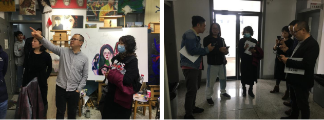 宣讲会结束后,张春祥副书记、辅导员任泽峰等带领我院一行人参观了艺术学院的展览厅、阅览室等公共空间和导师工作室、研究生实验室等,引荐学院各教研室主任,就学生教室的配备问题和学习氛围问题进行了现场交流。