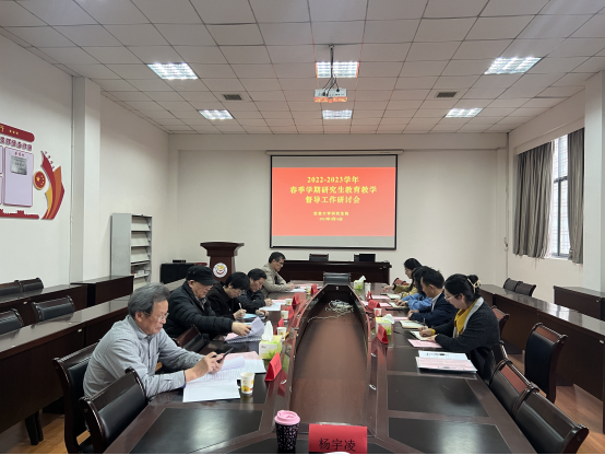 蒋硕华从研究生课堂秩序督查、研究生课堂教学质量督查、研究生中期考核督查、研究生培养质量专项检查、学位点专项评估工作督查、硕士研究生复试及博士研究生招生工作督查和研究生学位论文春季答辩督查等方面对2023年春季学期研究生教育教学督导工作计划进行了布置。