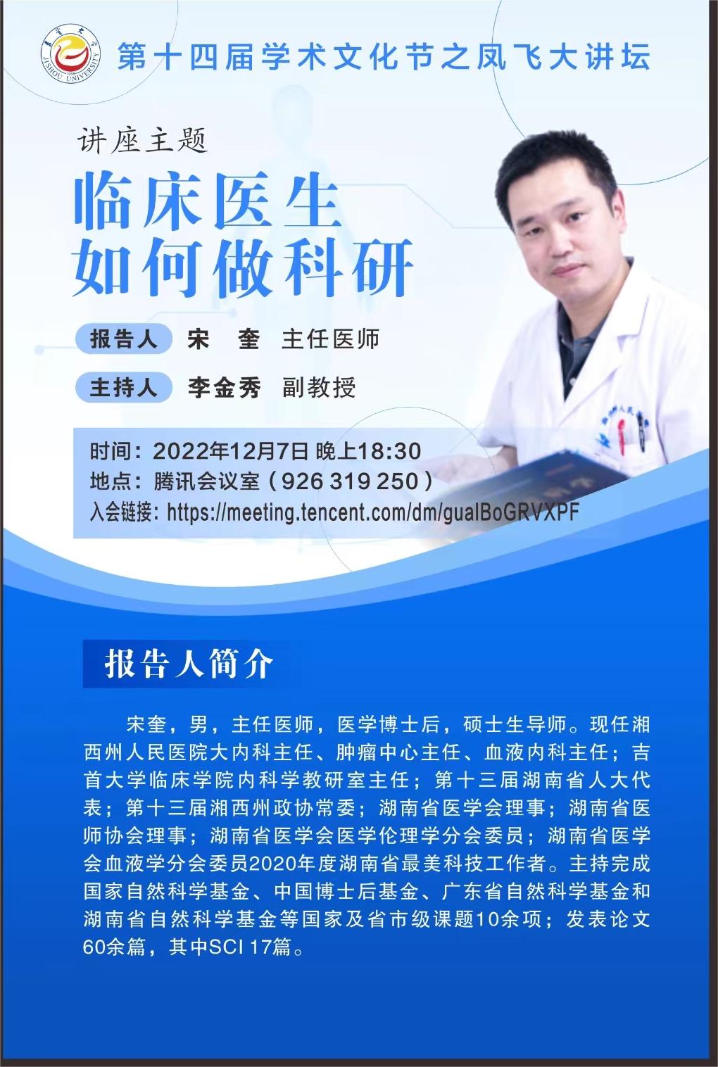 【第十四届学术活动节之凤飞大讲坛】——临床医生如何做科研