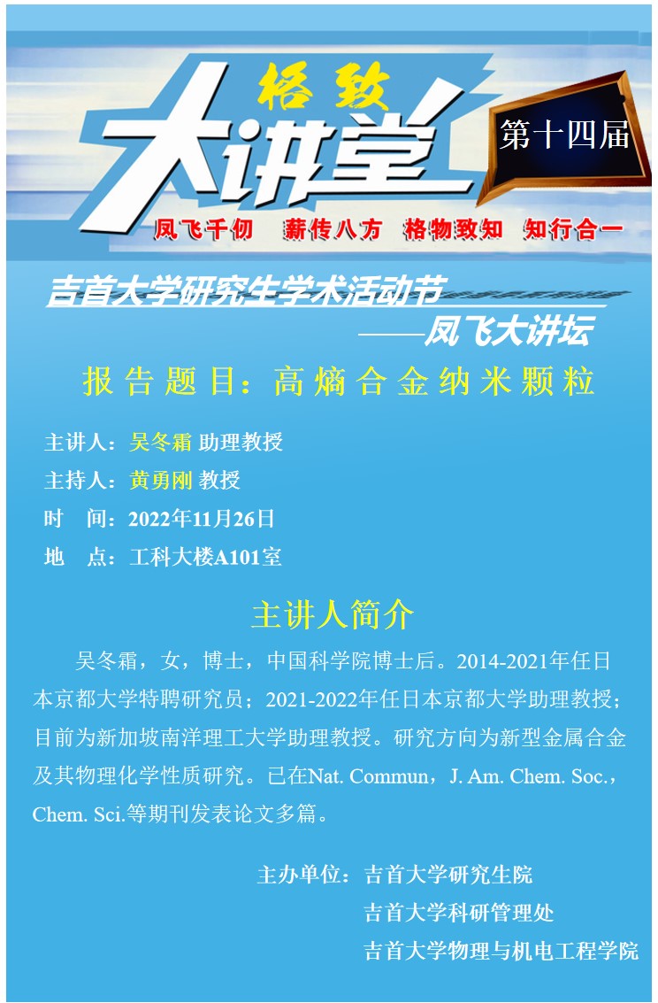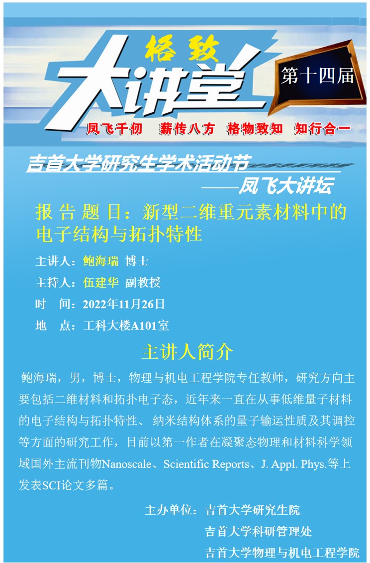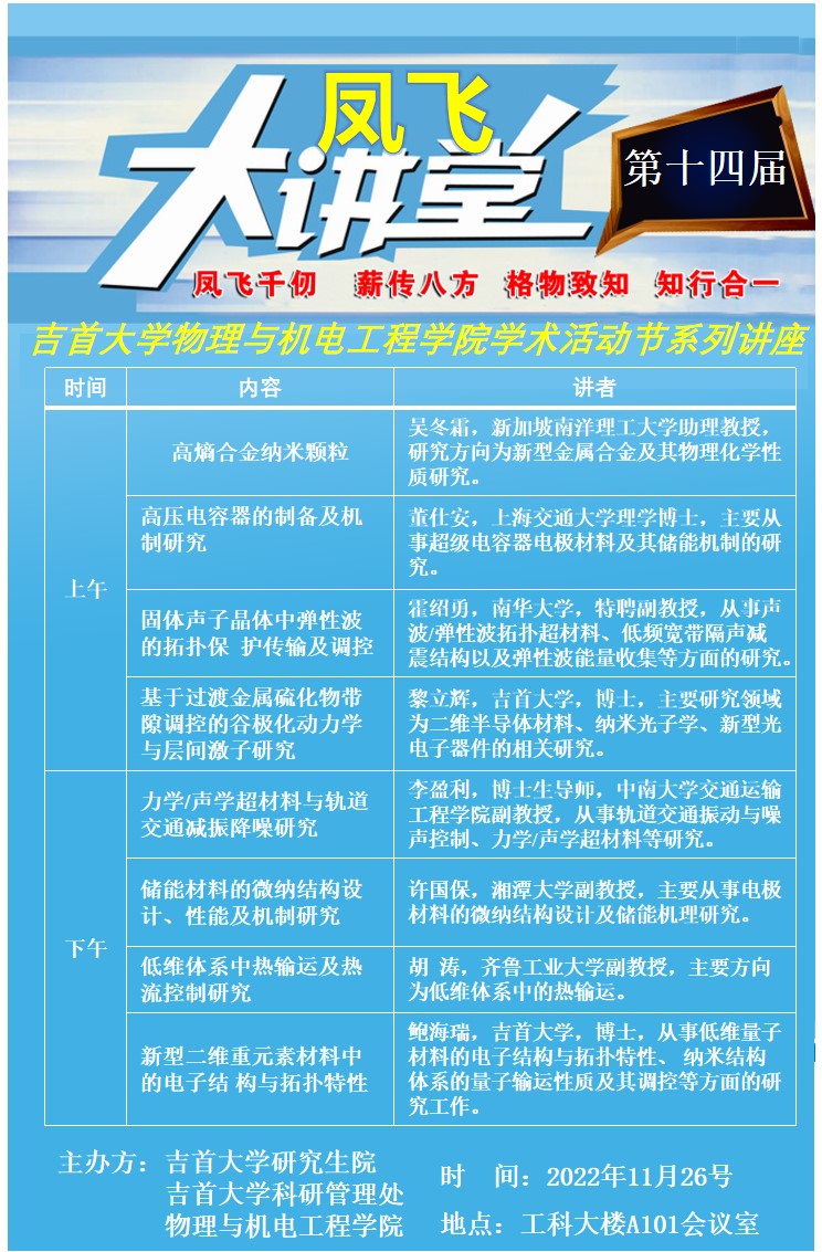 【第十四届学术活动节之凤飞大讲坛】——物理与机电工程学院八场系列讲座