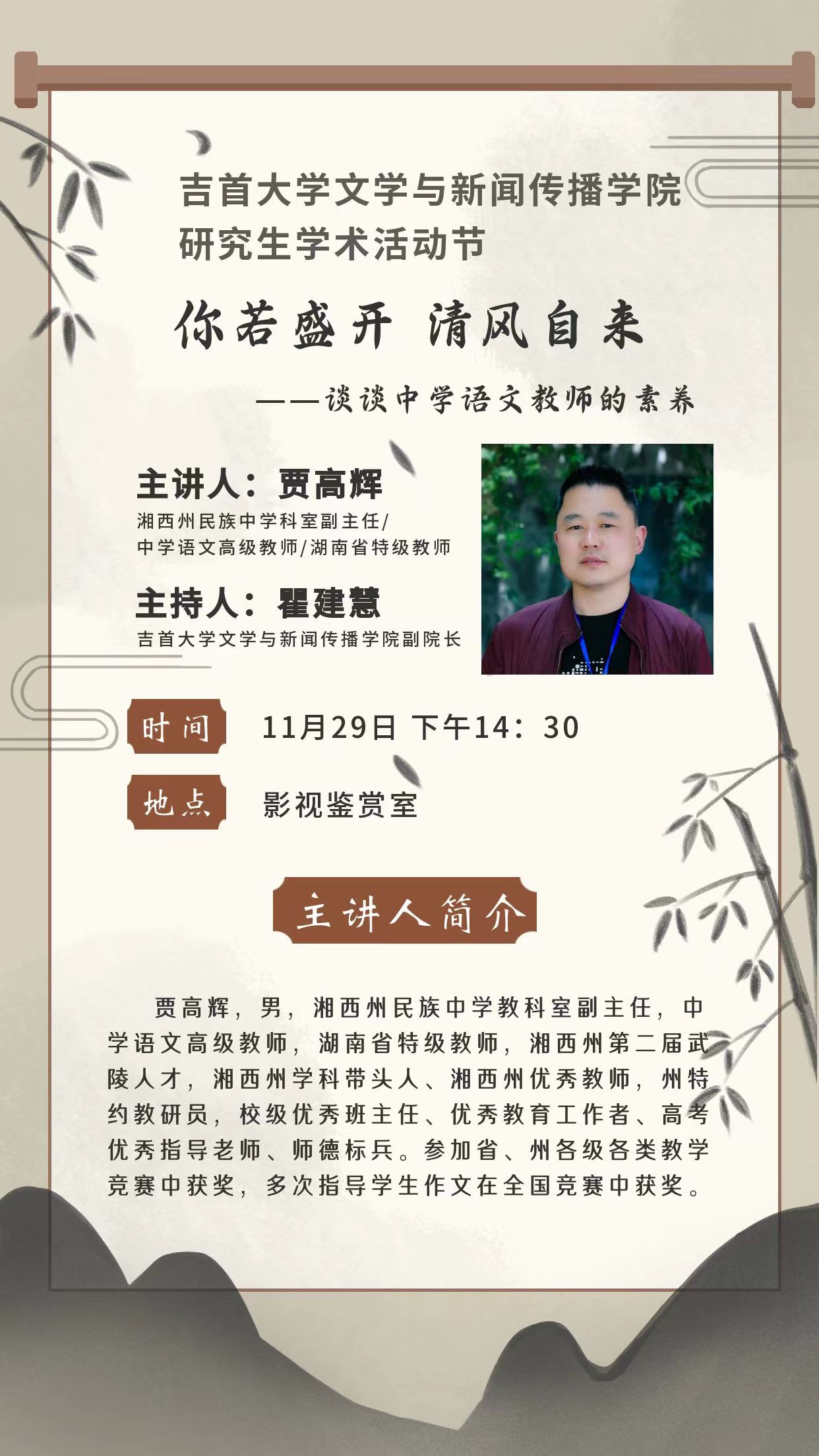 【第十四届学术活动节之凤飞大讲坛】——你若盛开 清风自来 谈谈中学语文教师的素养
