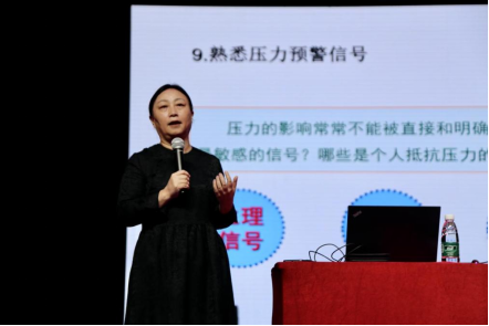 教师教育学院教授孟娟作了题为《在压力中成长——研究生的自我关怀》的心理健康教育。她以自我测量幸福作为切入点,积极抛出问题与同学们进行互动,引导同学们正确认识压力、分享减压的有效方法。