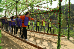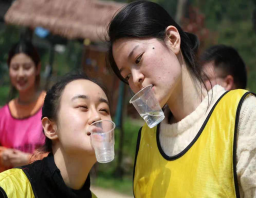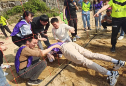 一顿美味的湘菜过后,“众人荡秋千”游戏项目开始。这个项目非常考验参与人员的肢体协调能力,前后摇摆着的细长木板上承载着多人重量的同时也带来了紧张刺激感,大家紧握住身体两侧的麻绳,深怕一个不小心从秋千上掉下去。