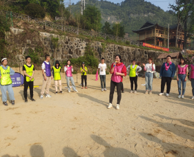 刚抵达目的地古丈,教练就带领全体成员进行了热身小游戏“一块五”。参与人员必须在教练现场发出的数字口令后立马寻找伙伴抱团,落单的人员只能遗憾出局。这项小游戏很考验参与人员的随机应变能力和团队合作意识。现场欢快的氛围以及全体成员的热情被很快点燃。