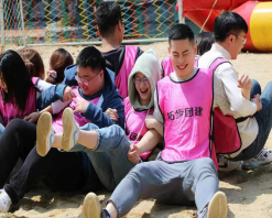 紧接着,经过各队员的头脑风暴后,产生了少年队、酱紫队、对不队、SCI核心期刊队四支团队。四支团队很快进行了下一个游戏项目“挑战150”,包括“屹立不倒”、“身体部位传道具”等内容,团队之间PK项目的赛制一下子激起了全体参与人员的高涨气势,通过协作共同取胜,有效的促进了各个团队协作力和凝聚力,现场的加油呐喊声此起彼伏。