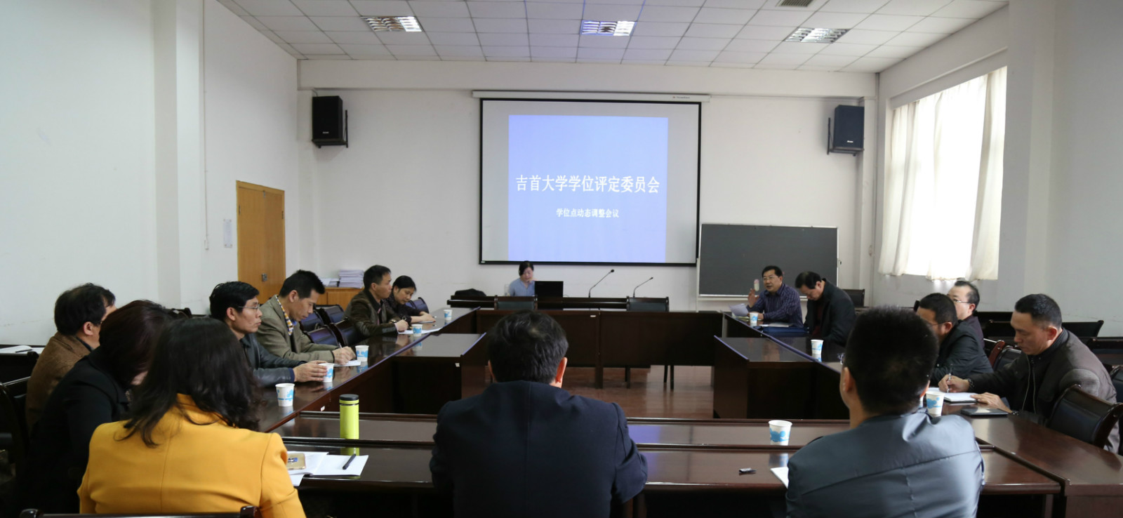 4月12日下午,我校学位评定委员会-学位授权点动态调整工作会议在研究生处会议室召开。校长白晋湘、副校长黎奇升、学位评定委员会成员及研究生处相关人员参加会议,研究生处就2016年学位点动态调整工作进行了汇报。