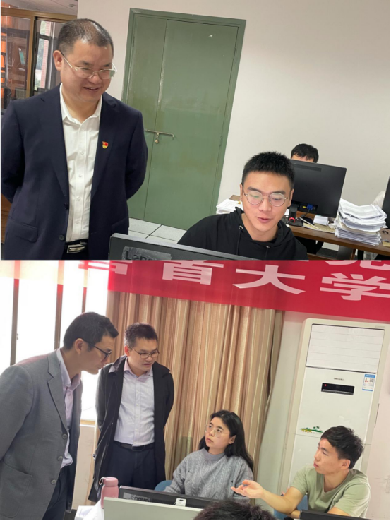 本网讯(徐琪 宋佳骏)10月15日上午,校党委委员、副校长方东辉一行前往数学与统计学院建模竞赛现场看望慰问参赛研究生。研究生院院长蒋辉,副院长肖宪平、廖文虎,数学与统计学院院长欧祖军等随行。