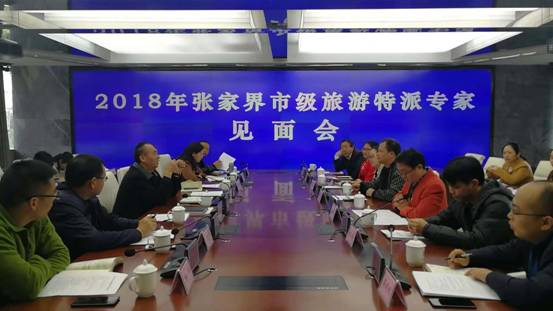2018年11月6日上午,张家界市级旅游特派专家见面会在张家界市旅游和外事侨务委员会智慧旅游智慧调度中心举行。张家界市委组织部副部长、市委人才办主任陈叶峰,张家界市旅外委党工委书记、主任兰智平,张家界市委组织部人才科科长、市委人才办副主任毛新宇,以及张家界市各区县旅外局负责人和派驻单位负责人出席会议,会议由张家界市旅外委副主任邓少兵主持。