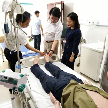 图为检查组在临床技能训练室检查
