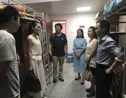 图为检查组到研究生宿舍看望研究生
