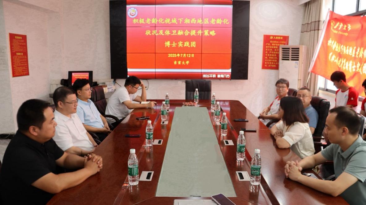 实践团队2024级博士生唐韶慨介绍了现阶段的调研进展与实践感悟。他代表实践团表态,将牢记各方嘱托,以严谨态度和饱满热情投入后续工作,让体育专业价值在基层实践中充分绽放。