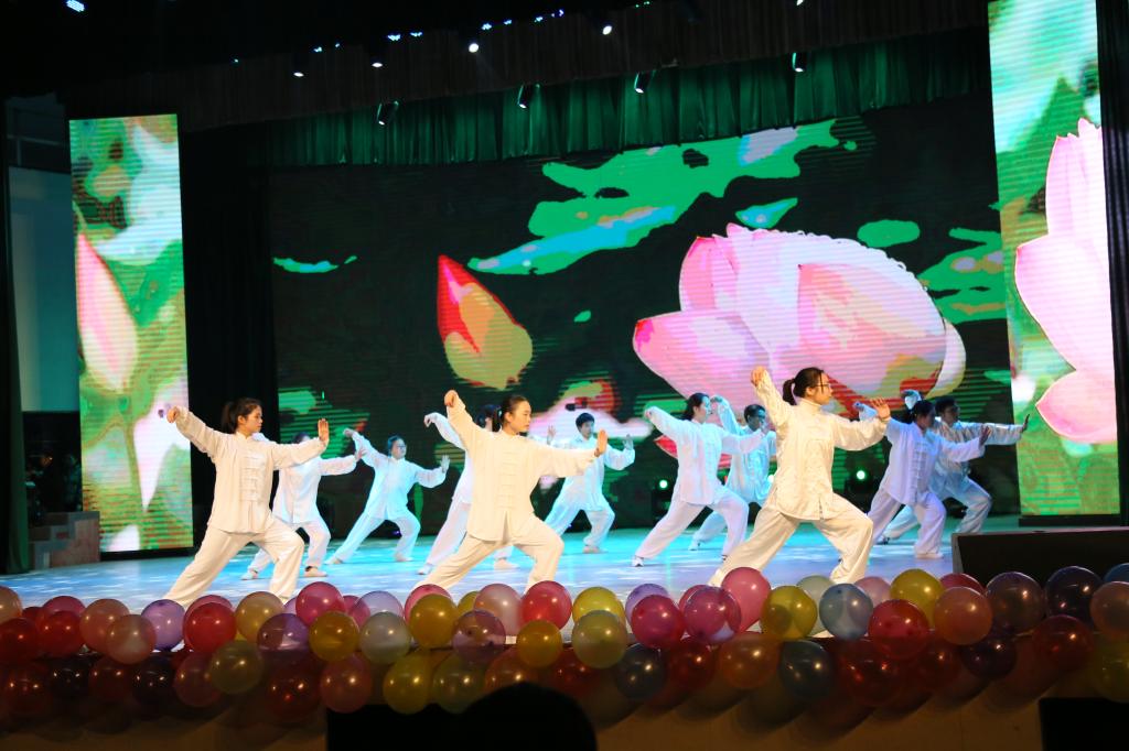 晚会在欢快地苗鼓声中拉开帷幕。随后,群舞《草原欢庆》将我们带入了辽阔的大草原,让我们感受到草原的宽广、感受到草原人民的热情快乐;激昂的歌曲《喜欢你》迎来阵阵掌声;健美操《我们不一样》跳出青春活力;太极拳《云水禅心》展现中华传统文化魅力;诗歌朗诵《相信未来》激励奋发前行动力;民乐五重奏余音荡漾;服装Show展现中华服装风采;风格各异的歌曲串烧、滑稽的小品、幽默的相声、华丽的群舞等各具特色节目轮番上场,使气氛更加活跃,让晚会精彩不断,高潮迭起,赢得台下阵阵掌声,欢呼声一浪高过一浪。最后,晚会在研究生会大合唱《明天会更好》中缓缓落幕。
