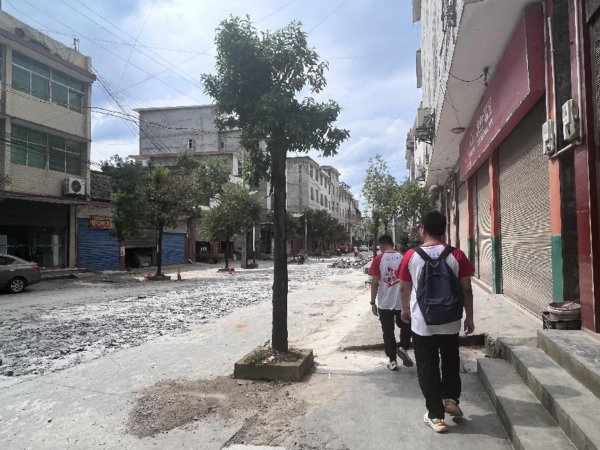 图为调查团队考察田家社区道路建设