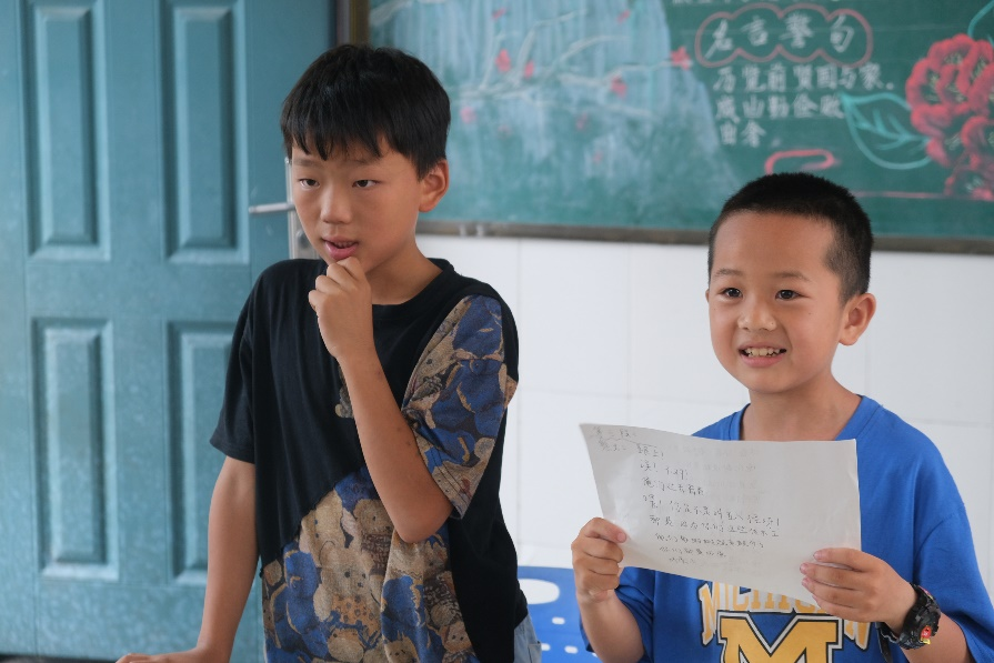 在数日的上课与观察中,实践团成员发现:孩子们学情复杂,很多孩子在课上不敢主动发言。在观摩了湘西州教育与体育局的送教课程后,实践团的成员们打开了思路,重新调整了教学方向,力求知识与趣味兼并,心理引导与知识学习并举,设置了配音课程和手工课程。实践团成员周晓青为取得更好的教学效果,手抄多篇台词,并细心标注生僻字拼音,让孩子们在轻松愉悦的课堂氛围中学习普通话。
