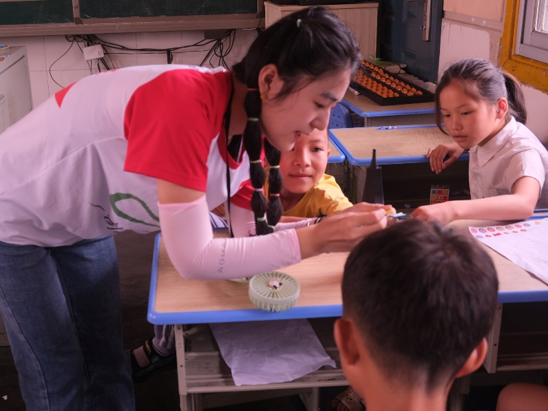 课间休息时,实践团成员陪伴小朋友们踢球、跳绳,一阵阵欢声笑语飞出村小。实践团队长孙艳玲有感而发:“这里的孩子多缺乏父母陪伴,我们要尽己所能给孩子们关怀,带去关爱。”课前的接送,课后的走访,打动了孩子们的心。孩子们虽然不善言辞,但也会悄悄编织花环送给老师。在和孩子们一次次的互动中,实践团感慨道:“这是一种双向奔赴的情感。”
