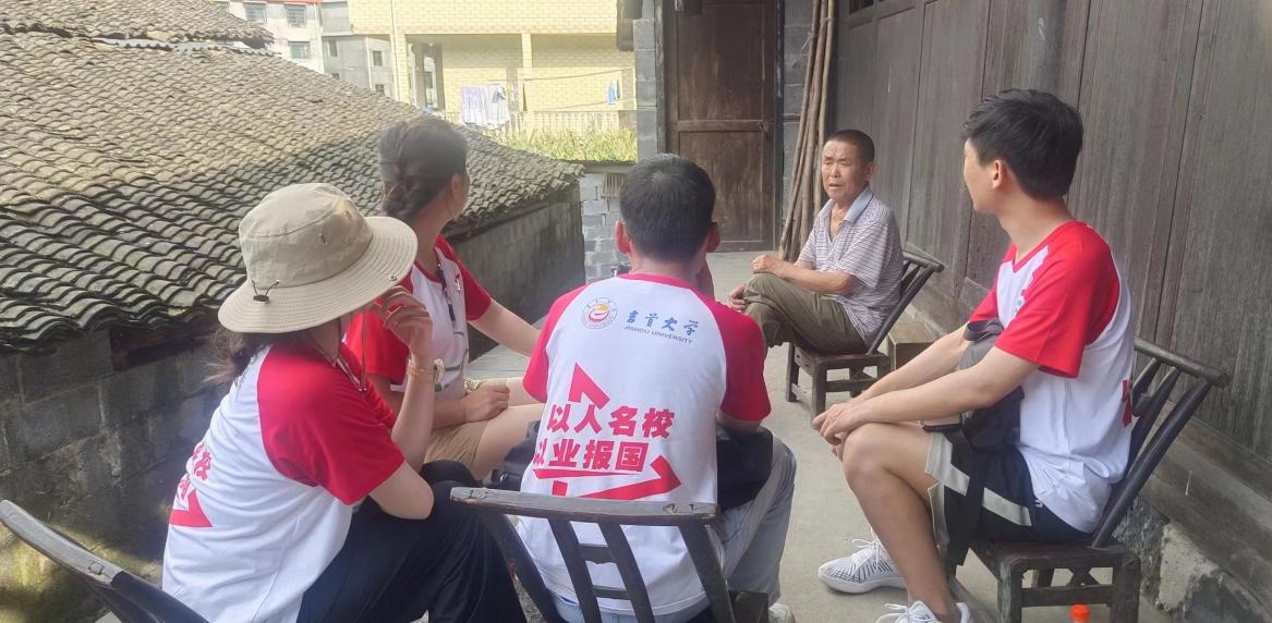 (图为实践团与排己娄村村民交谈合影)