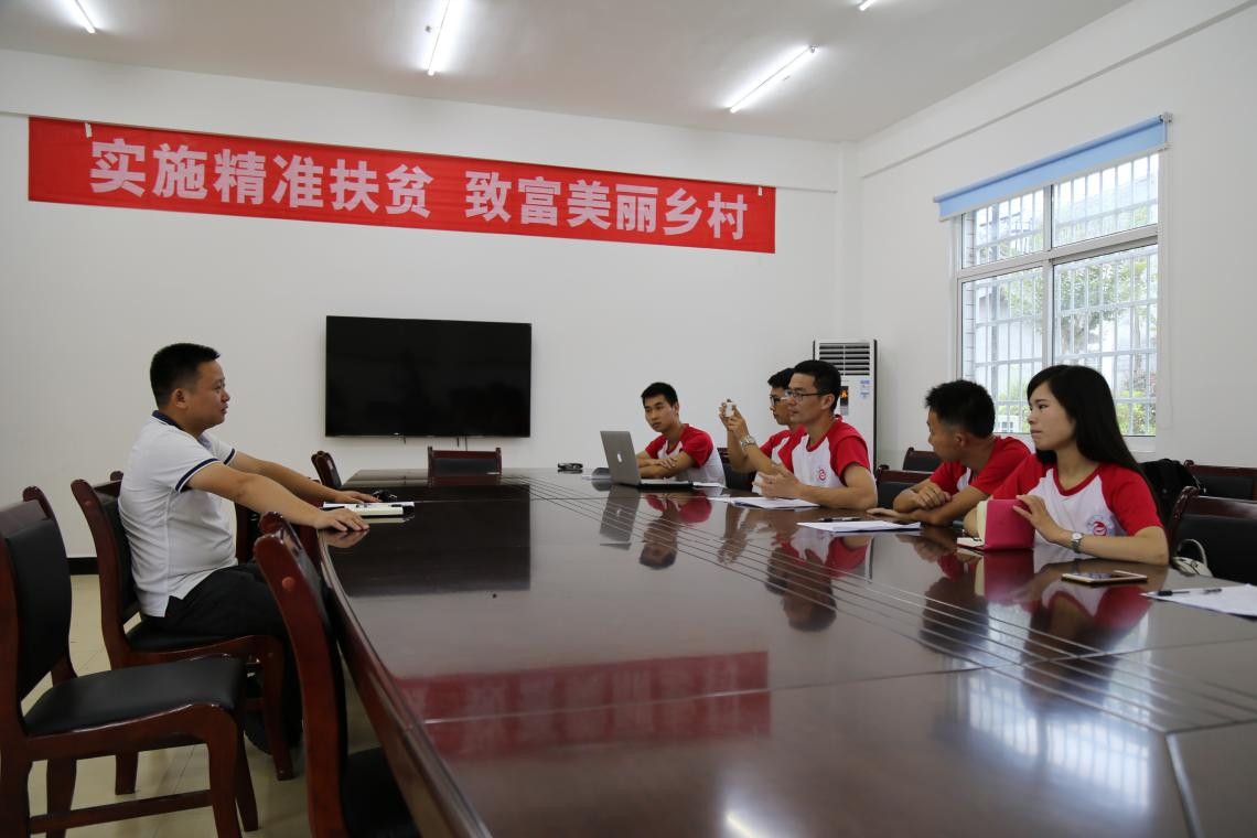 该村是省住建厅扶贫点,扶贫工作队队长张磊和副队长徐胜华对实践团的到来表示热烈欢迎。随后,实践团与扶贫队队长在村委会办公室进行座谈。座谈会上,实践队指导教师与其他成员就留守儿童问题、扶贫产业项目具体措施、该村未来发展等方面进行交流。