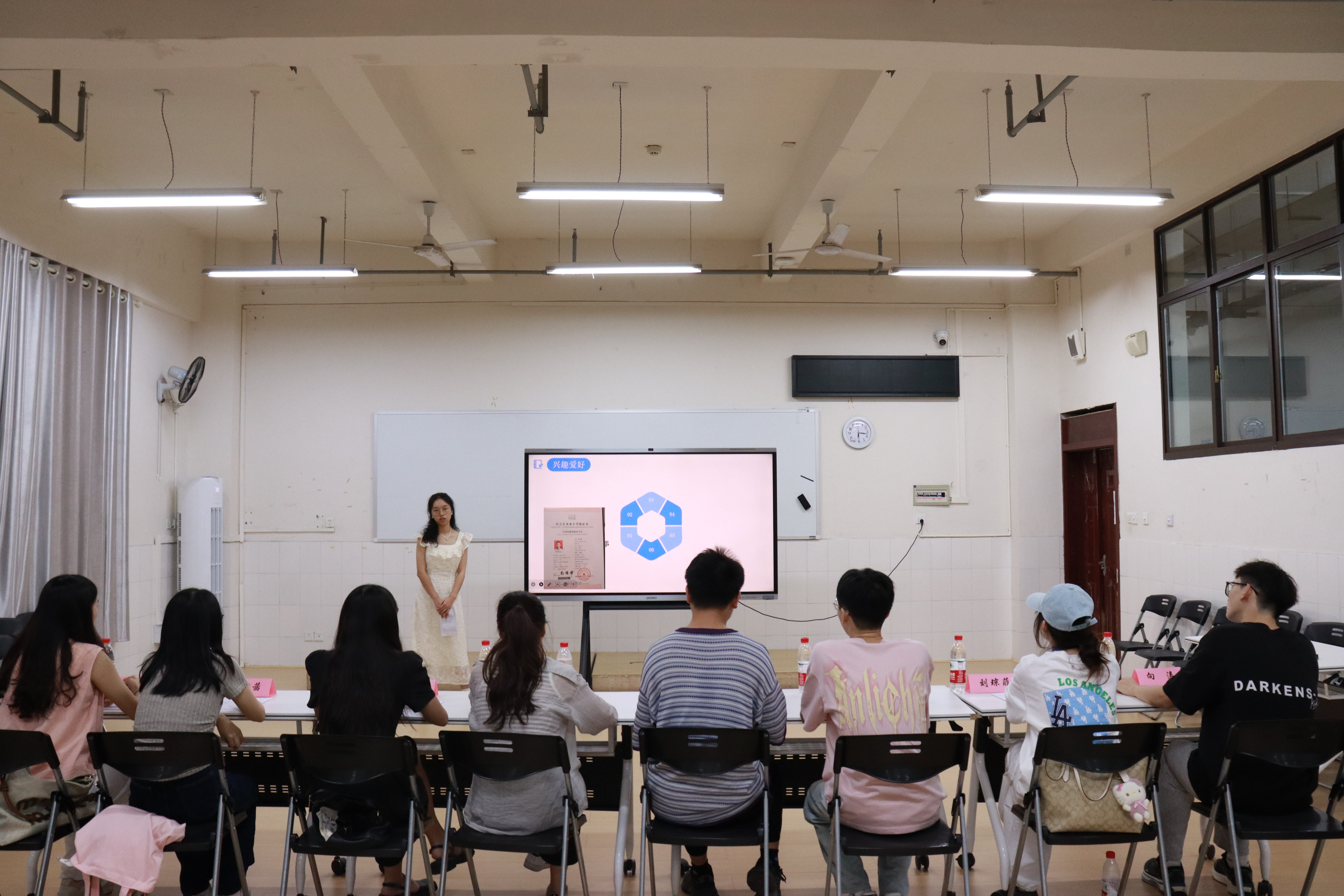 面试过程分为两个部分,一是自我介绍,内容涵盖个人情况、学习经历和兴趣优势等。二是问答环节,评委根据同学的自我介绍与报名表情况进行提问,全面考察同学们的综合能力。