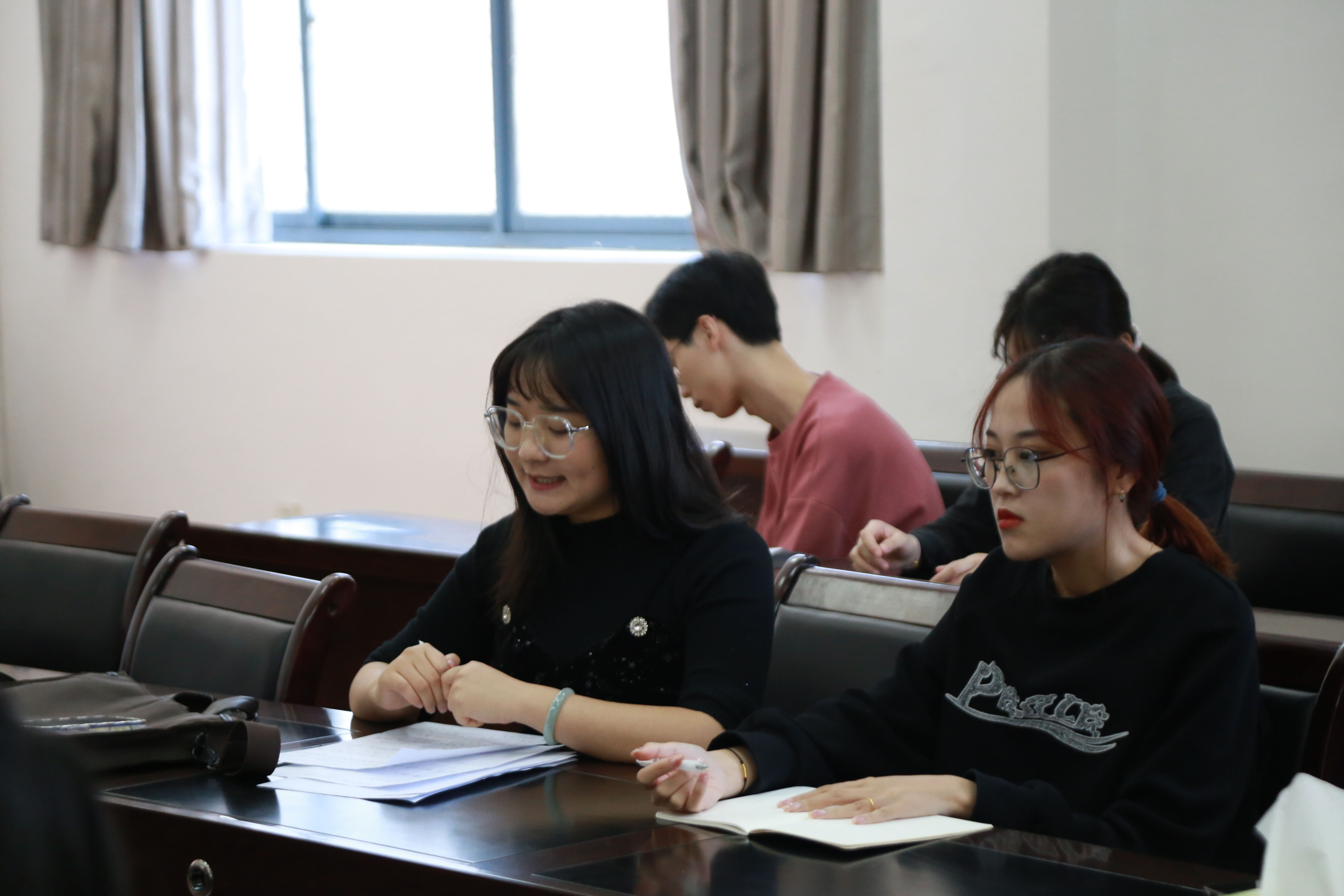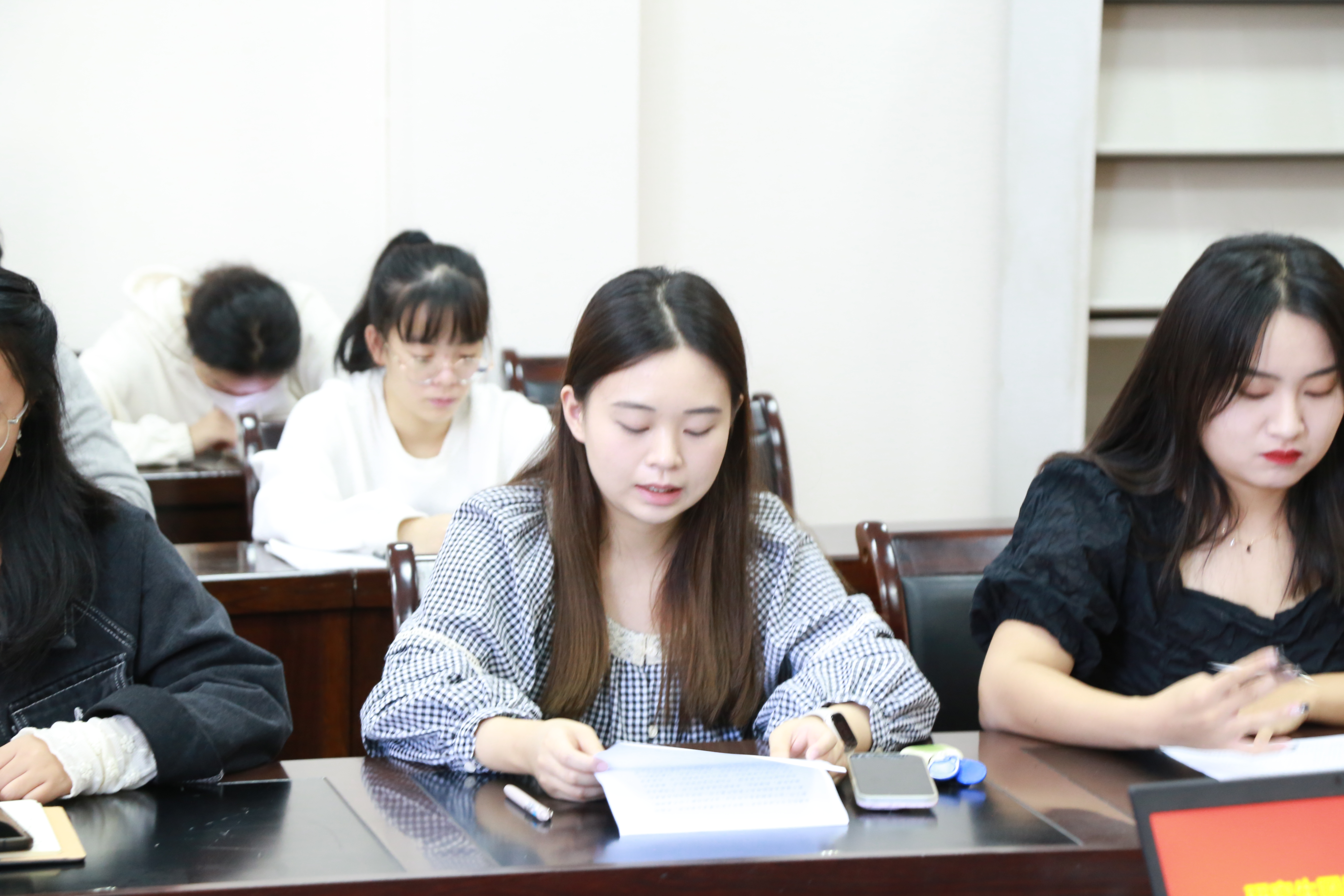 最后,研究生会郭维、冉雅婷、王建、毛羽冰作为本学期迎新、纳新等活动的负责人在会上总结并反思了在工作过程中存在的不足,并表示在今后会及时调整工作思路,改进工作方法,推动各项工作更好开展。