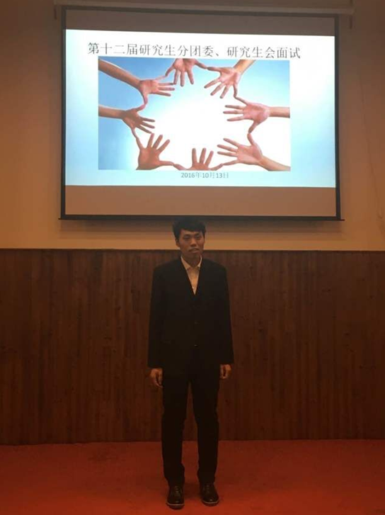 又是一年“纳新”时,2016年10月13日晚,william威廉中文官网第十二届研究生分团委、研究生会纳新面试在总理楼研究生学术沙龙室举行。此次纳新面试由主席助理向巍主持,研究生处学工办肖宪平老师、十一届研究生分团委、研究生会主席团及各部门部长出席会议并担任评委,目的是吸纳研究生中的优秀人才加入研会,同时也给新同学提供一个展示自我的平台。本次活动得到了面试者们积极参与,每一位同学都做好了充分的准备,以极高的热情前来参加。