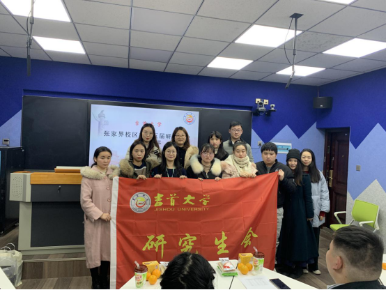 最后,张家界校区的十四届研究生分团委、研究生会干部成员为新一届研究生分团委、研究生会干部成员佩戴会徽并交接研究生会会旗;新一届研究生分团委、研究生会干部成员为张家界校区2020级研究生分团委、研究生会的干事们佩戴会徽,并分别进行合影留念。